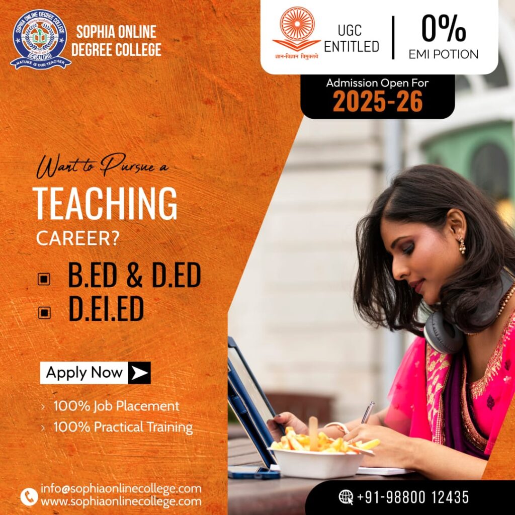 At Sophia Online College, students get the advantage of flexible learning, expert guidance, and a curriculum designed for both regular and distance education needs. Whether you prefer classroom-based study, distance mode, or a diploma in elementary education online, the D.El.Ed program equips you with the skills and confidence to build a rewarding teaching career.