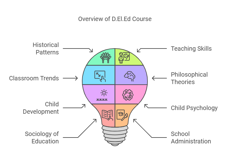 D.El.Ed—also known as the Diploma in Elementary Education—is a two-year diploma program focused on enhancing teaching competencies, classroom skills, child development theories, and modern educational practices. The course includes classroom training, teaching internships, and teacher-resource development to prepare candidates for real-world school environments